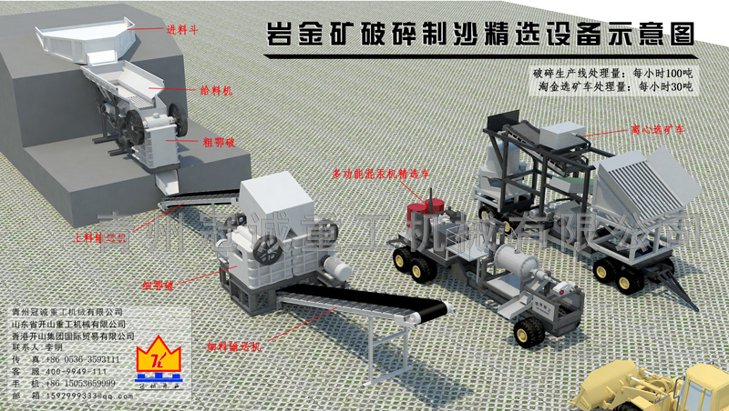 破碎生產線+巖金礦破碎制沙離心選礦車+混汞機車